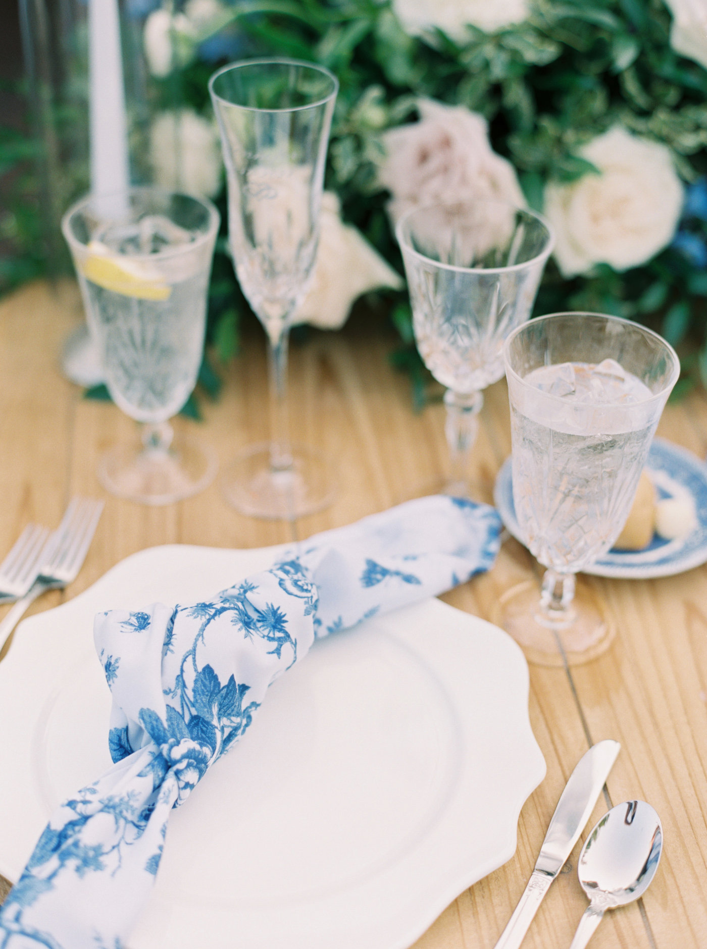 Our Antionette glassware collection features a wine glass, water goblet and champagne flute.