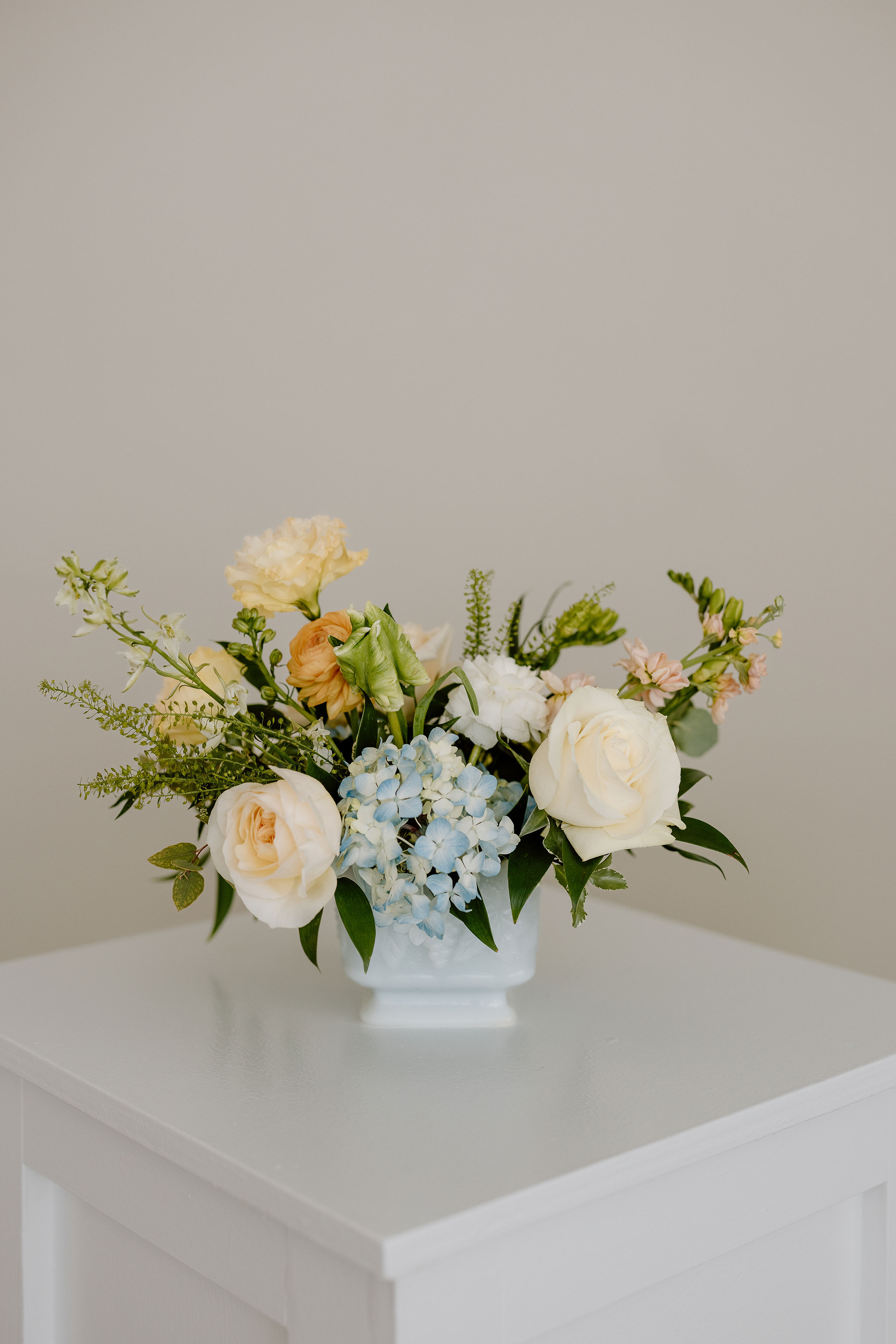 Description: Our CeCe floral collection features lush, garden style arrangements in a soft pastel color palette featuring muted shades of peach, yellow, blush and blue.