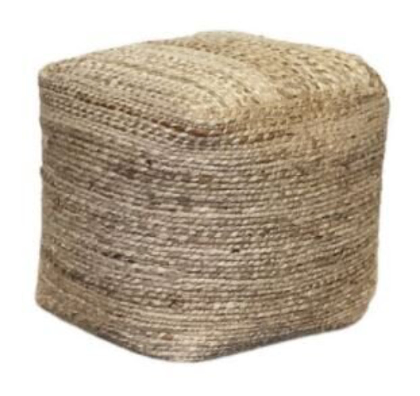 Description: Add our natural braided jute fabric pouf to your lounge area! This pouf can go with multiple different styles and pairs well with many of our sofas.