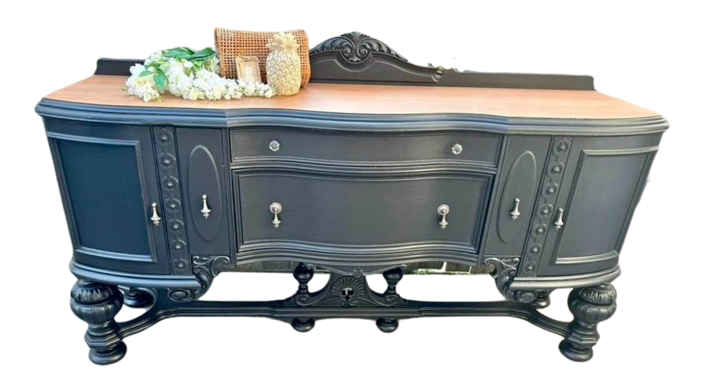 Description: Looking for the perfect display piece? This oversized buffet in an elegant black finish is the perfect focal point!