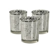 Description: Beautiful silver mercury votive candle holders. The perfect amount of silver for your tabletop, and gives off just the right amount of candlelight. Pairs great with our mercury glass candlestick collection and mercury glass pillar candle holders.