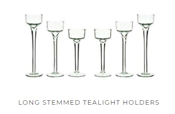 Description: Our long stemmed tea light candle holders come in three heights, 6", 7" and 8". The perfect way to achieve that taller candlelight glow without the use of a candlestick. The glass finish provides an elegant look, suitable for many design styles.