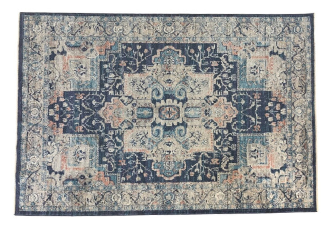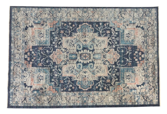 Description: This gorgeous rug has various shades of blues. It pairs well with multiple of our lounge sets or can be used for a boho look for your aisle.